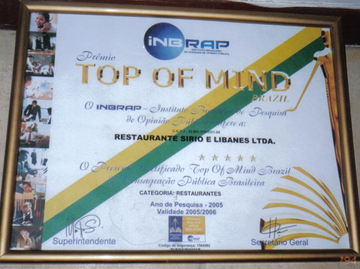 Infelizmente, há alguns anos atrás, os principais meios de comunicação tiraram de suas premiações de gastronomia a categoria "ÁRABE", ficando os restaurantes árabes englobados na categoria de "ORIENTAL", logo concorrendo com restaurantes japoneses, tailandeses etc, muito na moda na atualidade.